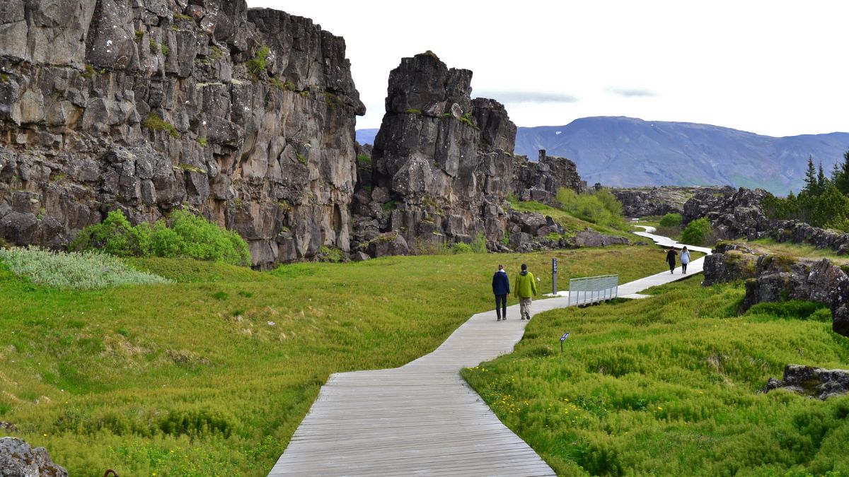 The major feature of the Þingvellir National Park is the rift valley that was caused by the separation of 2 tectonic plates during the time of the continental drift.