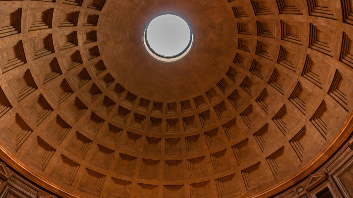 The Pantheon’s dome is 43 meters high and features an oculus that opens to the sky.